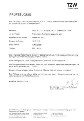 ST-2052無石棉墊片獲得飲用水認證KTW,W270 我司ST-2052無石棉墊片于近日通過了歐洲D(zhuǎn)VGW機構(gòu)的認可。獲得了歐洲飲用水方面認證證書。 包括DVGW KTW,KTW W270。 ST-2052是一種通用型的無石棉環(huán)保密封墊片材料,可以應(yīng)用于多種工業(yè)環(huán)境。更多應(yīng)用可來電咨詢 KTW證書 W270證書 上一個 返回列表 下一個