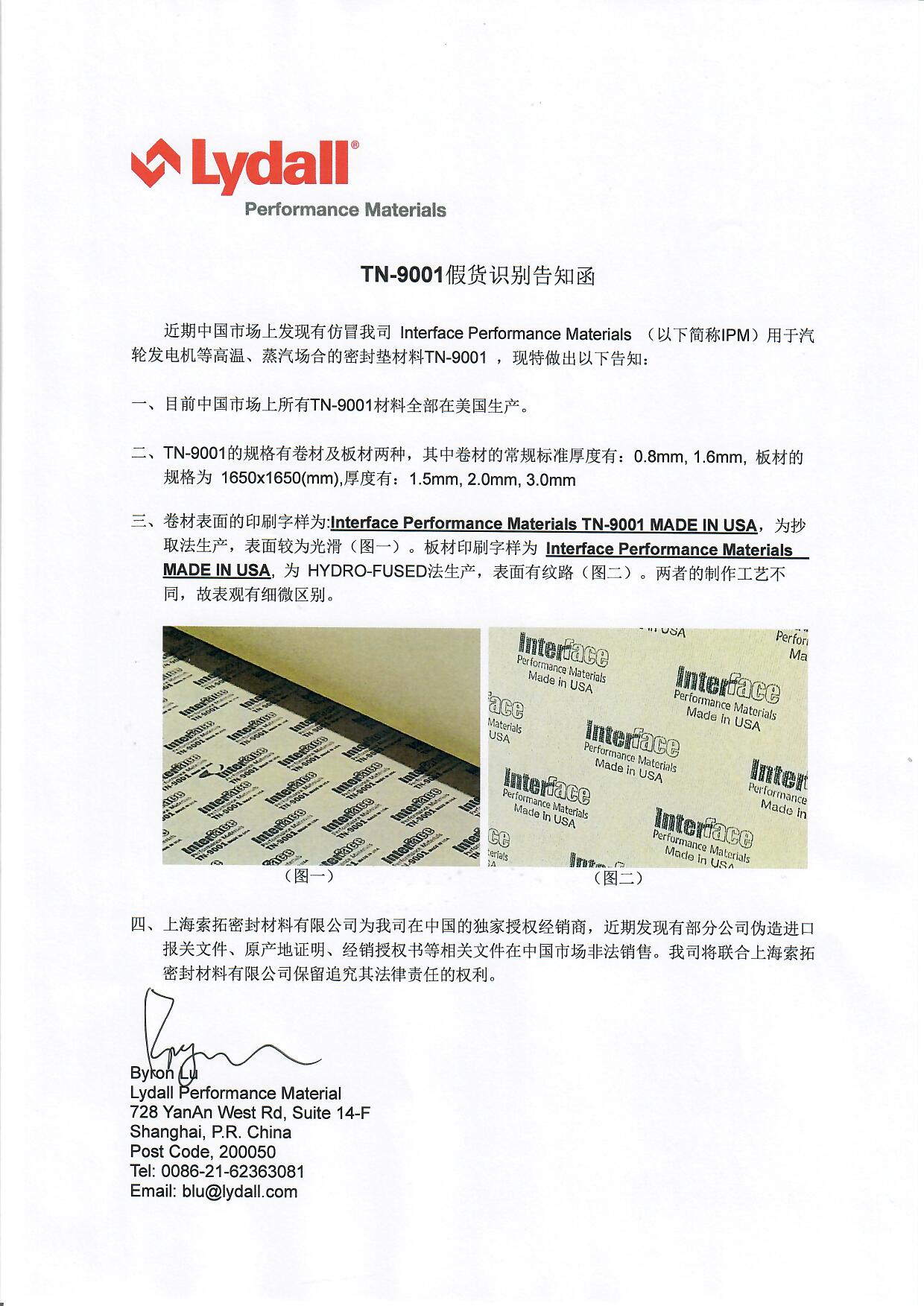 美國因特費斯廠家緊急出具TN-9001假貨識別告知函 近期中國市場上發(fā)現(xiàn)有仿冒InterFace Performance Materials用于汽輪發(fā)電機等高溫、蒸汽場合的密封材料TN-9001,現(xiàn)特作出以下告知: 在此我們對長期支持并使用正版美國INTERFACE產(chǎn)品、維護知識產(chǎn)權的用戶表示忠心的感謝! 上一個 返回列表 下一個