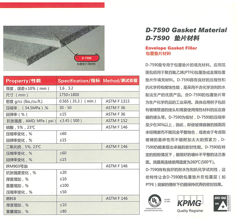 D-7590是我司推出的一款專用于搪玻璃反應釜的無石棉密封板