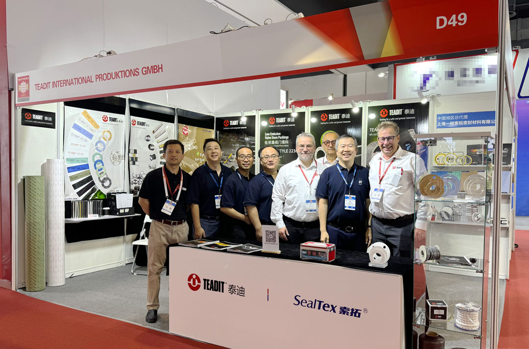 本次展會(huì)展出了帶有TEADIT® TAGTM 標(biāo)記的低逸散性可追溯盤根2848,以及API 622 測(cè)試平均泄漏率僅為2ppm、ISO 15848-1 密封級(jí)別A的2236盤根;多款膨體四氟和改性四氟材料,例如:24SH膨體四氟,TF1570\TF1580\TF1590改性四氟,以及各種符合BAM氧氣測(cè)試、PFAS Free,適用于超低溫工況、低泄漏等要求的密封產(chǎn)品。